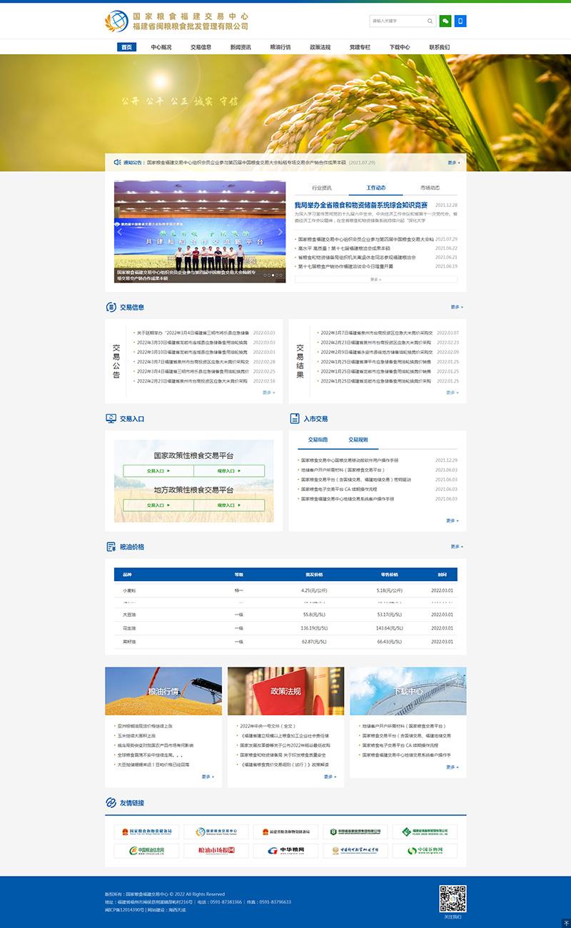 近日,由海西天成承建的國家糧食福建交易中心門戶網(wǎng)站正式上線,網(wǎng)站以全新的互聯(lián)網(wǎng)形象對公眾展示,網(wǎng)址為www.fjgrainmarket.com